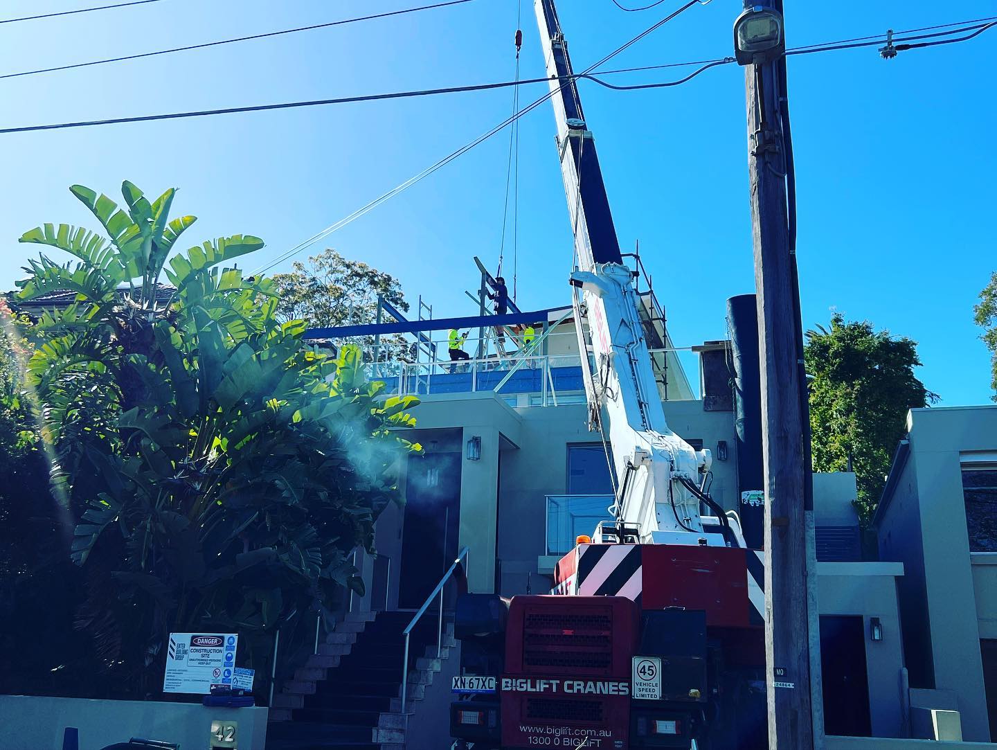 Upon inspection we found the access poor so this job was going to need a crane to install the steel. The posts were set out and stood in preparation for the crane to lift the steel into place. All the steel was erected within a few hours.