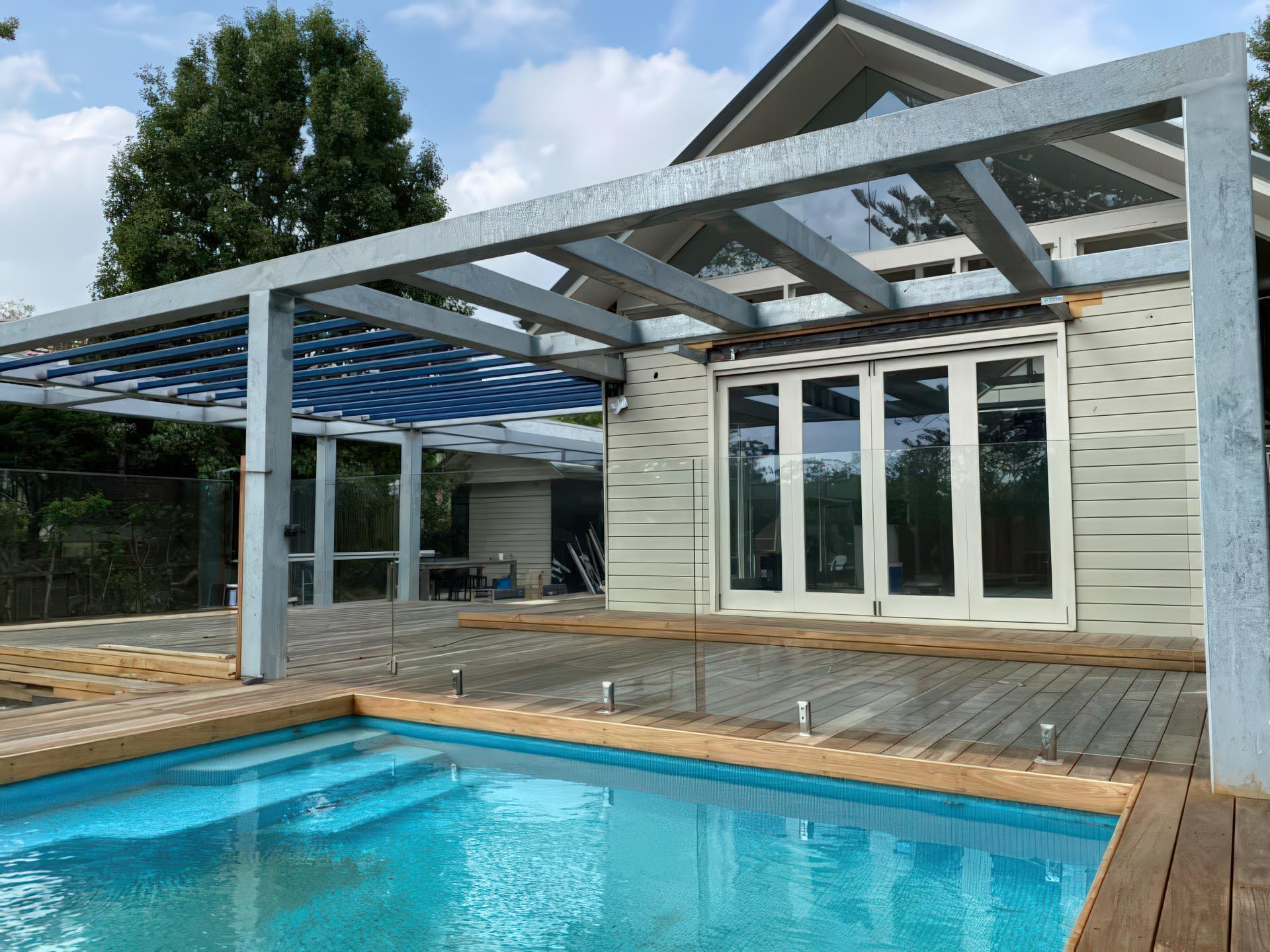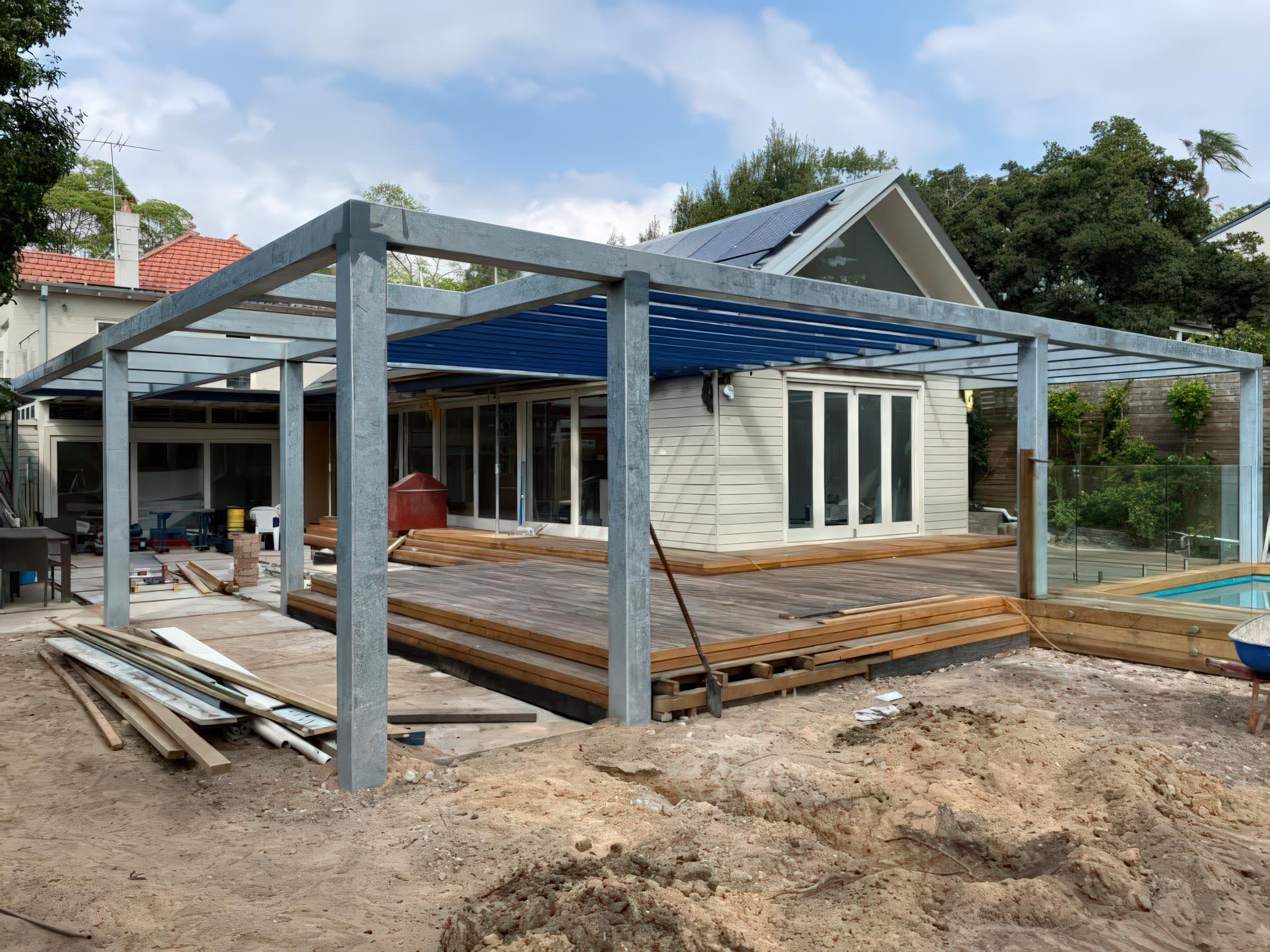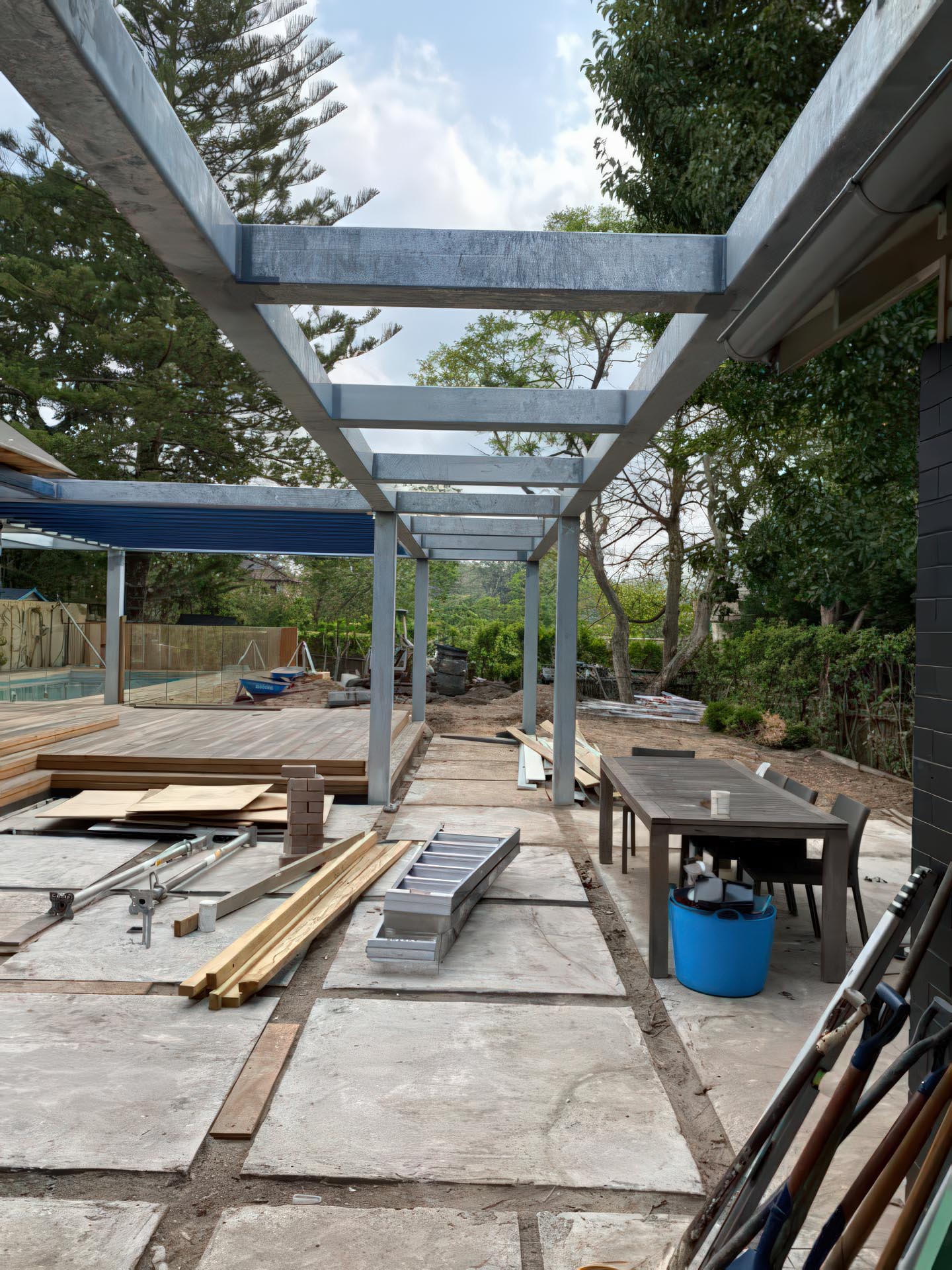 We site measured this job for access and scope and found out that all of the members are site welded which meant not a lot of fabrication but alot more time on the installation process.These members were individually handled via trolleys around the back yard.